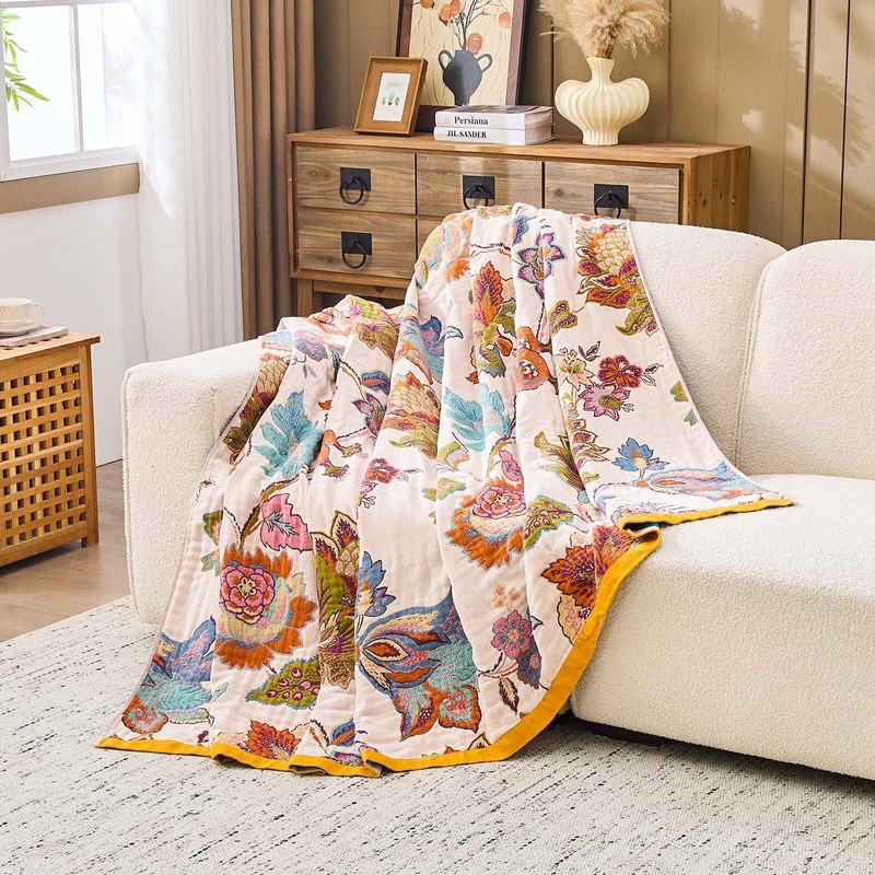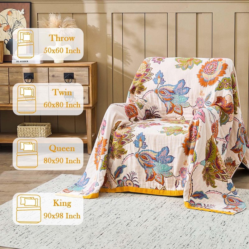 KMBFWU Summer Throw Blanket for Bed, 60"x80" Boho Throw Blankets 100% Cotton Quilts Farmhouse Decoration Warm Soft Blanket Muslin Bed Blankets for Couch Chair