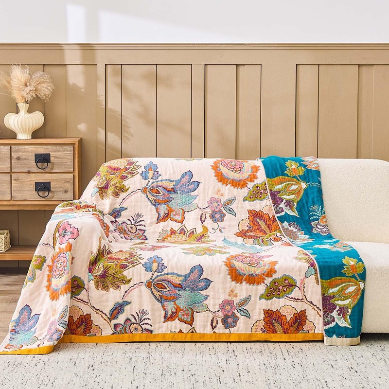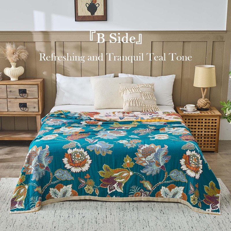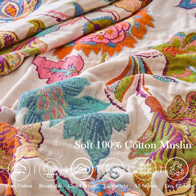 - Cotton Muslin - Enhance your relaxation experience with this luxurious 100% cotton muslin blanket. Its ultra-soft, breathable, lightweight fabric feels like a cloud, warm and comfortable, perfectly balanced, soft and breathable for all seasons. The soft gauze texture brings a comfortable and soothing feeling, whether you are relaxing at home or sleeping soundly. Let you enjoy safe and peaceful comfort every day.