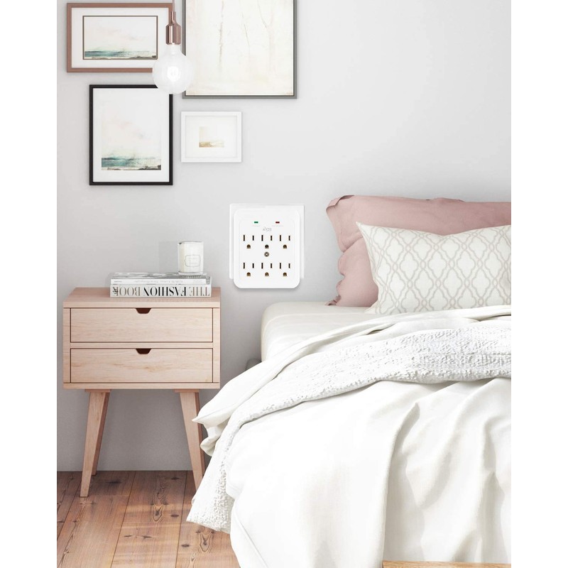 - 6 AC Outlets: the extended 6 outlets fit 6 standard plugs simultaneously, with built-in 980J surge protection components.The “Protected” indicator LED light turns on to show your devices are protected against electrical spikes at the maximum.