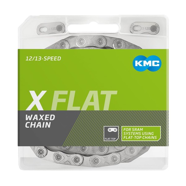 KMC X-Flat 12/13 Speed Waxed Flat Top Chain, 126 Link, Silver