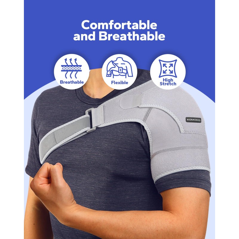Komoko Shoulder Brace, Rotator Cuff Support Brace with Ice Pack Insertion Capability, Pressure for Preventing Strains and Dislocation, Alleviating Shoulder Pain, Adjustable Fit for Men and Women