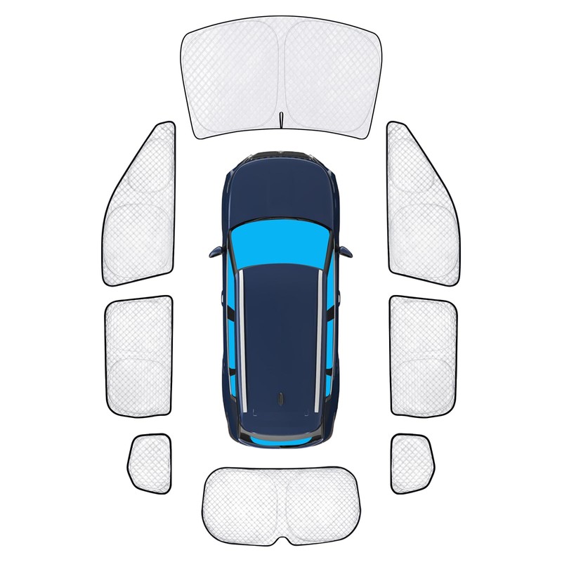 - 【8pcs Full Window Sun Shade Sets】:Full coverage sunshade(front window, side window, rear window), effective privacy protection; shading rate can reach 99% (be patient during installation); protect the car interior from UV damage.