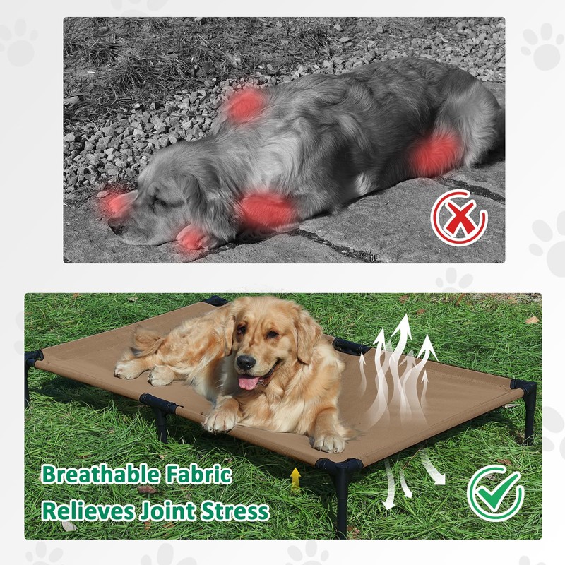 - BREATHABLE TESLIN MESH: This outdoor dog bed comes with breathable and durable Teslin mesh, provides airflow and firm support to relieve joint pressure. Our dog cot bed is suitable for dogs of all life stages, from puppy to the senior