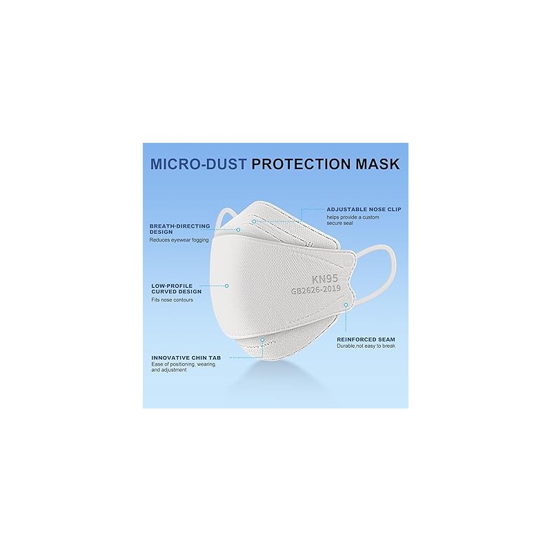 - 5-LAYER FILTRATION - This KN95 face masks meets the standard with GB2626-2019. The outer layer is non-woven fabric which can filter large particles, middle 2-layer melt-blown fabric and hot air cotton can block particles. The inner layer is skin-friendly non-woven fabric
