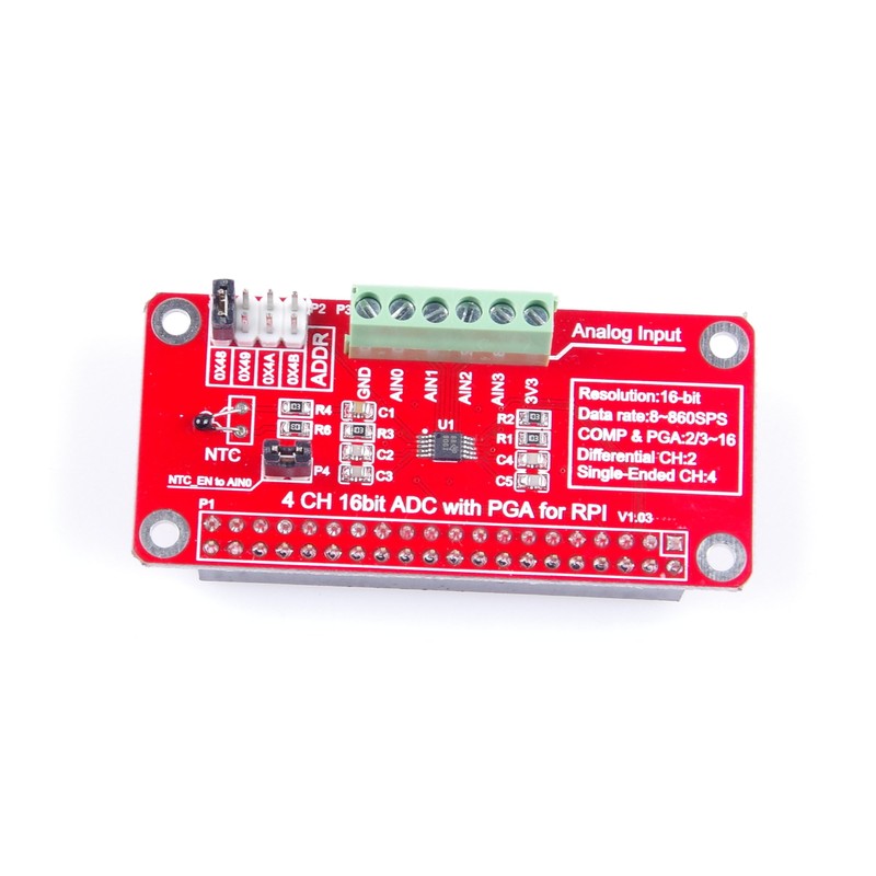 KNACRO 4-Channel 16Bit ADC with PGA for RPI Raspberry PI 16 Bits I2C ADS1115 ...