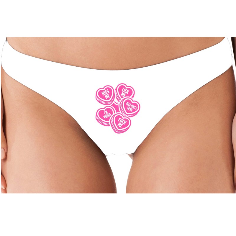 Knaughty Knickers Dirty Valentines Day Heart Candies Suggestive Fun Gift White Soft Cotton thong Adult Flirty Fun