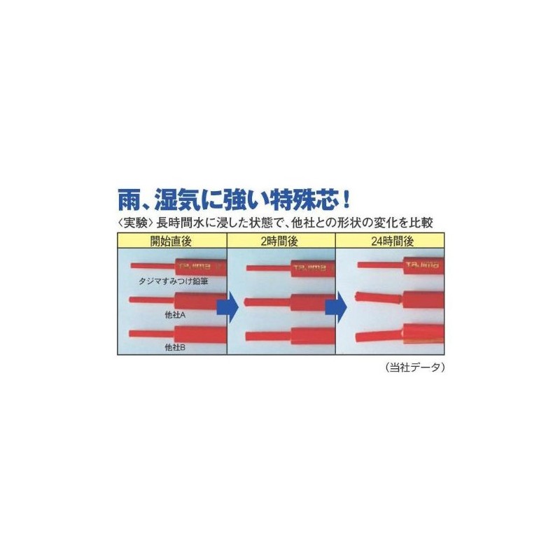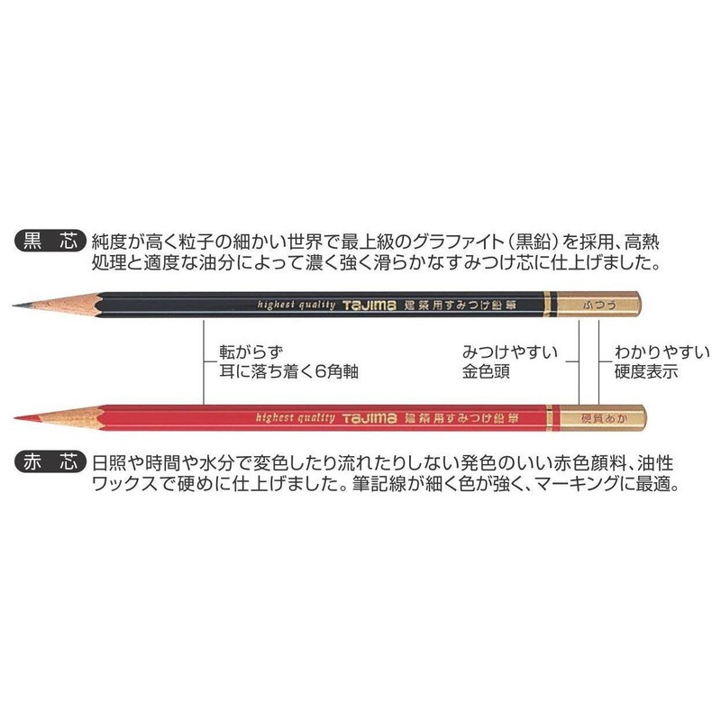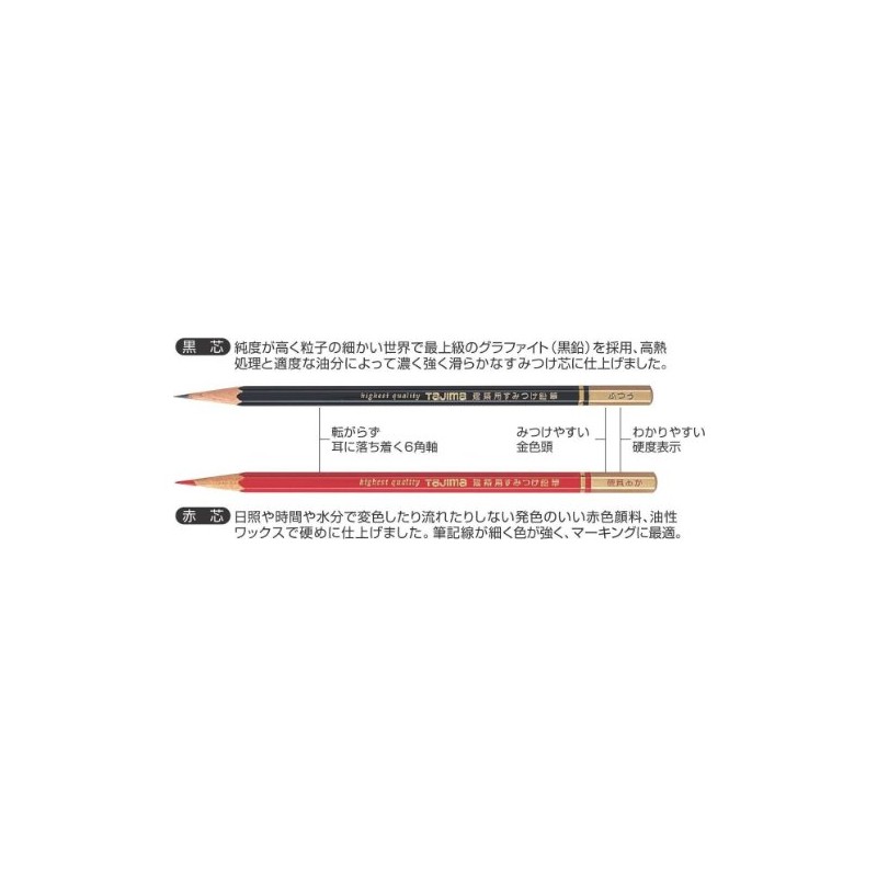 - 純度が高く粒子の細かいグラファイト(黒鉛)を高熱処理と適度な油分により濃く、強く滑らかな書き味に仕上げた建築用すみつけ芯。