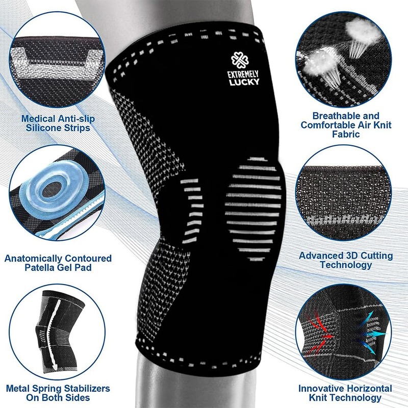 - Enhanced Design: Experience next-level comfort with our anti-inflammatory therapy knee support. It's designed to eliminate allergies and itchiness, thanks to its highly elastic, breathable compression fabric that perfectly conforms to your knee's shape. The 3D woven structure and high-precision knitting cutting technology ensure a secure fit. Side spring stabilizers and a non-slip gel pad keep it securely in place during exercise, preventing sliding or rolling.