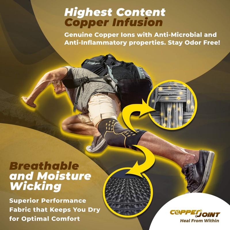- NATURAL EFFECTS OF COPPER: Our knee support for men and women is made with copper infused performance nylon. The copper ions help pull excess electricity from your body which aids in relieving pain and discomfort. It is a more natural way to manage pain.