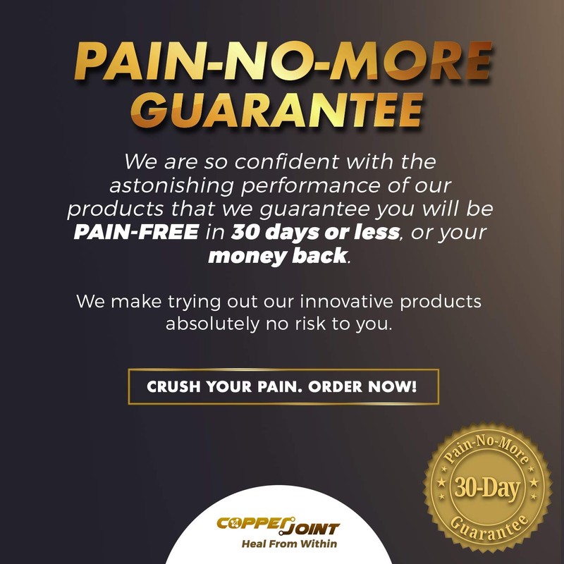 - PAIN-FREE GUARANTEE: We believe you should only need to purchase products that will lead to actual results. At CopperJoint, we are so confident in our products that we guarantee you will be pain-free in 30 days or your money back.