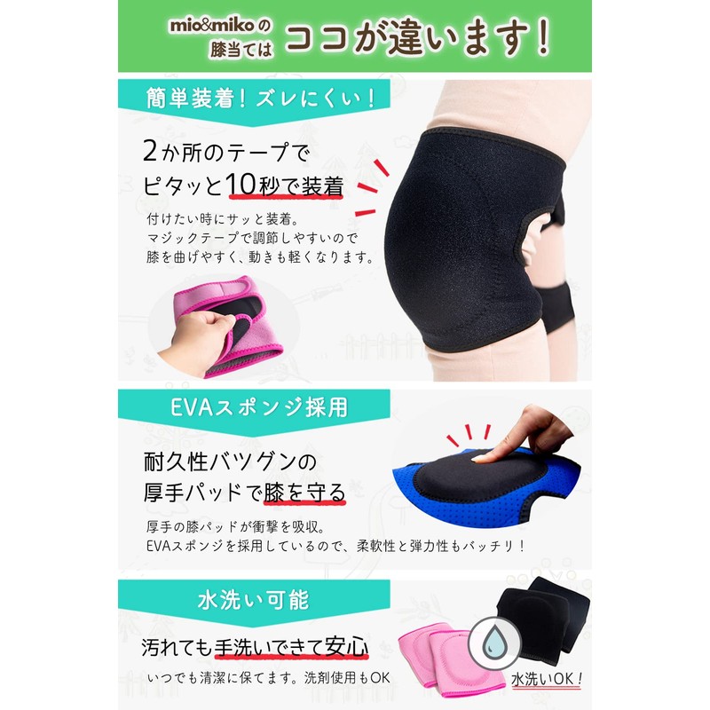 - Easy to install. It does not slip easily. There are two sizes to choose the one that fits you and will not slip easily. Easy to install in 10 seconds by simply rolling up two tapes EVA sponge is used for excellent durability. Thick padding to protect your knees! It can be washed with water, so you can always keep it clean