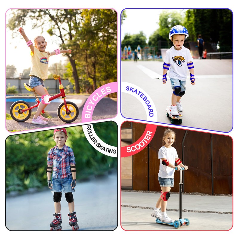 - All-Round Protection for Multi-Sports - Perfect for a variety of outdoor activities, including roller skating, scootering, inline skating, cycling, and skateboarding, this set provides comprehensive protection for your child’s knees, elbows, and wrists. Whether they’re riding a bike, scooter, or ATV, you can have peace of mind knowing they’re well-protected during their adventures.