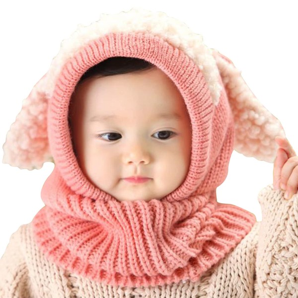 Knemksplanet Baby Girls Boys Winter Hat Scarf Earflap Hood Scarves Skull Caps Kids Thick Earflap Hood Cap with Ear 1T-5T (CA/US, Alpha, One Size, Pink hat)