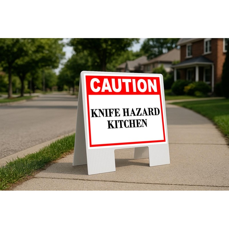 Knife Hazard Kitchen Caution Folding Coroplast A-Frame Double-Sided 23in x23in
