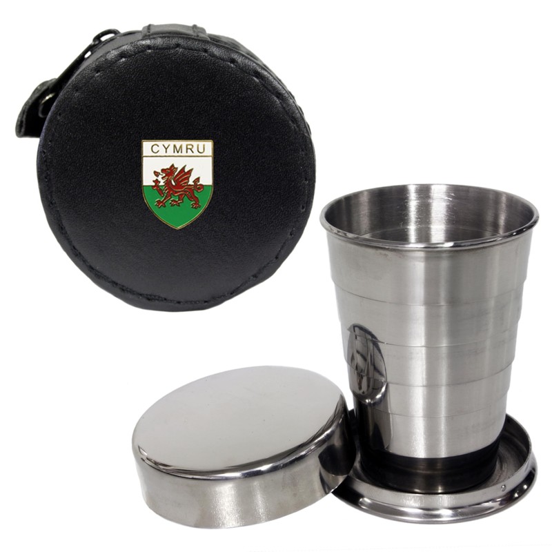 Knight 2oz Collapsible Drinking Cup with Leather Wales Cymru Case