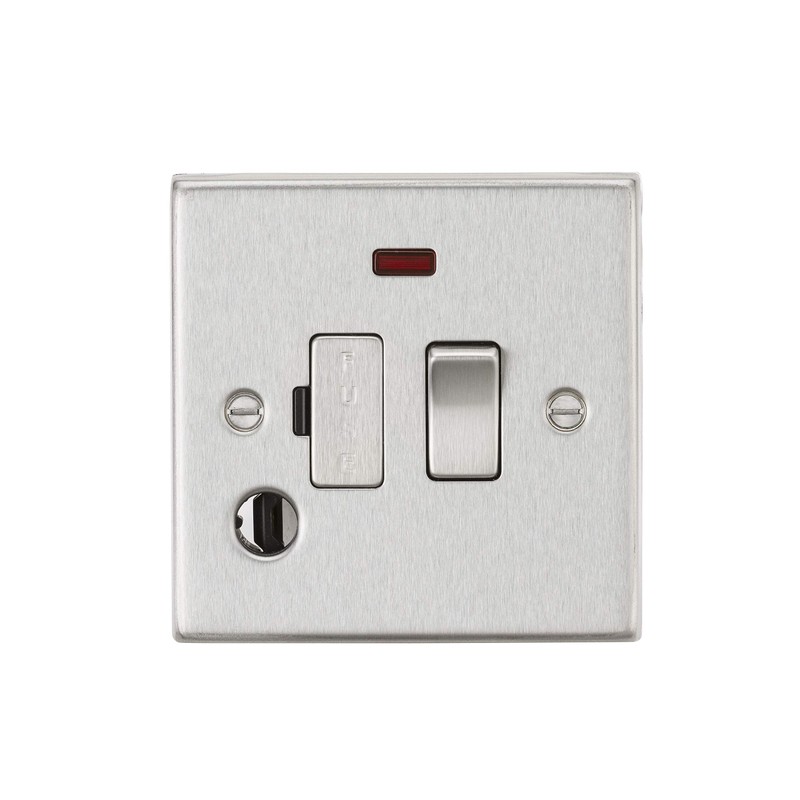 - 13A Switched Fused Spur Unit with Neon & Flex Outlet - Square Edge Brushed Chrome