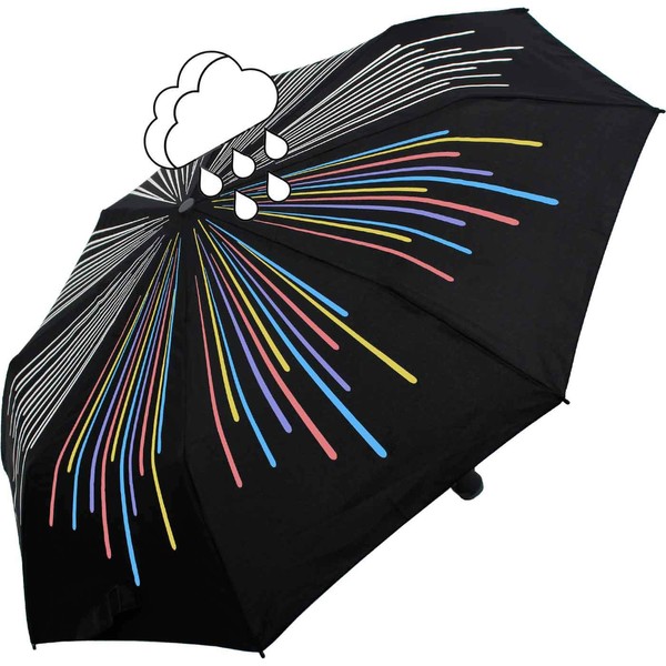 The colour of the canopy is black and white, black and colourful when wet, the material used is made of 100% polyester. Small and lightweight, the umbrella weighs only approx. 335 grams. When open, the umbrella roof is 96 cm tall. When closed, the umbrella measures 29 cm.