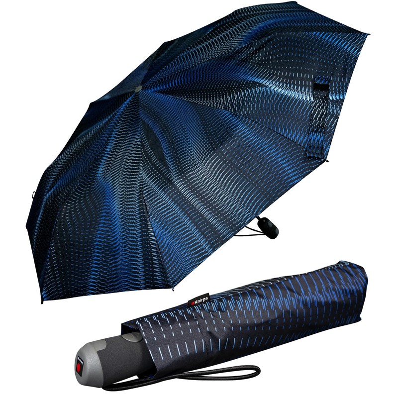 • This model with filigree line pattern from Knirps is the ideal companion on grey rainy days. The pocket umbrella impresses with an easy to use automatic open/close, high-quality workmanship and a comfortable grip with velvety surface.