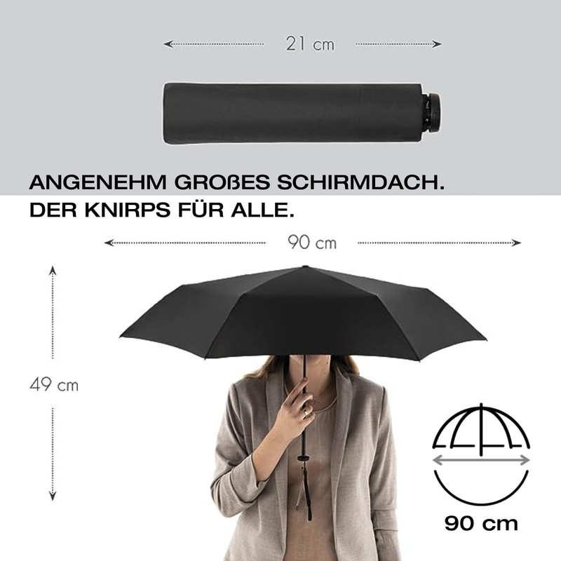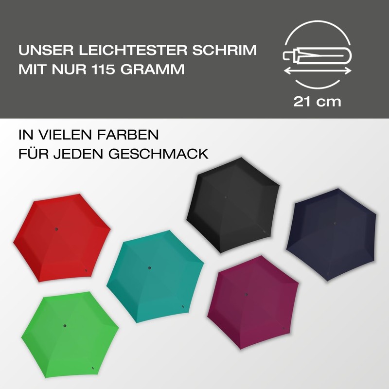 - The smallest – the umbrella for men and women is so small that it even fits in the chest pocket – it is also lighter than a smartphone at 115 g, making it the perfect travel umbrella