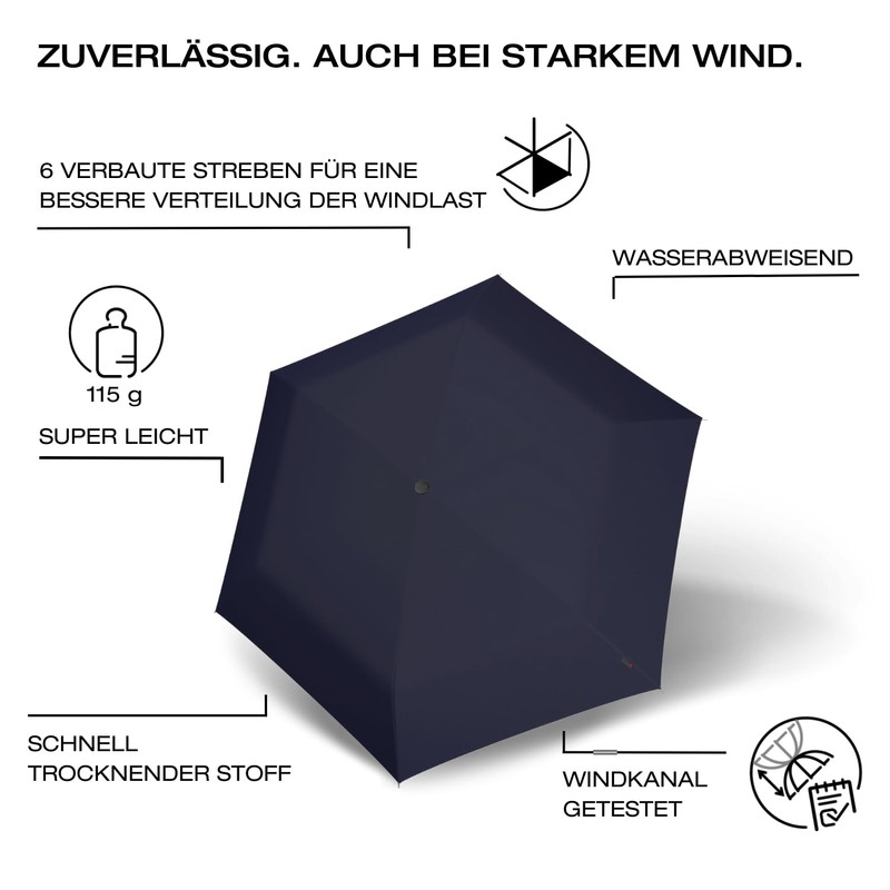 - Equipped for any weather – since rain rarely comes alone, the umbrella has been tested up to 100 km/h in the wind tunnel and remains stable even in heavy rain as well as wind and gusts