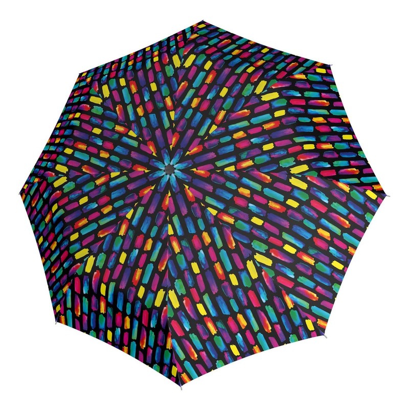 "DER Knirps für ALLE - ein Taschenschirm mit manueller Öffnungsmechanik und angenehm großem Schirmdach, unter dem auch einmal zwei Personen Platz finden. So our A.050 can be described well. The umbrella is manually opened and closed by hand without effort. Thanks to the 3-piece steel pole, this model can be pushed together to a compact 24 cm and therefore fits easily in your bag or backpack. The umbrella is manufactured in well-known Knirps quality and has been tested in a wind tunnel at wind speeds of up to 80 km/h. The stability is also increased by the 8 struts in the umbrella roof, as the struts optimally distribute the wind load. The frame is in modern black and the umbrella roof is available in different colours