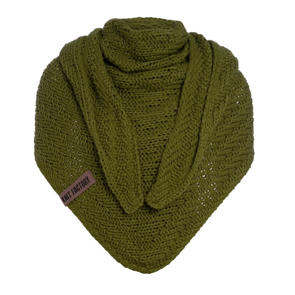 The Knit Factory Sally Moss Green Triangle Scarf is a must have in your wardrobe. This knitted scarf features a sturdy and trendy look thanks to its eye-catching knitted pattern. To add the finishing touch, the triangle scarf features the signature Knit Factory label. In addition, you can wear the oversized scarf in different ways, and the Sally triangle scarf drapes generously, providing both comfort and style to accompany you through the colder days. In addition to moss green, this wrap is available in various other fashionable colors.