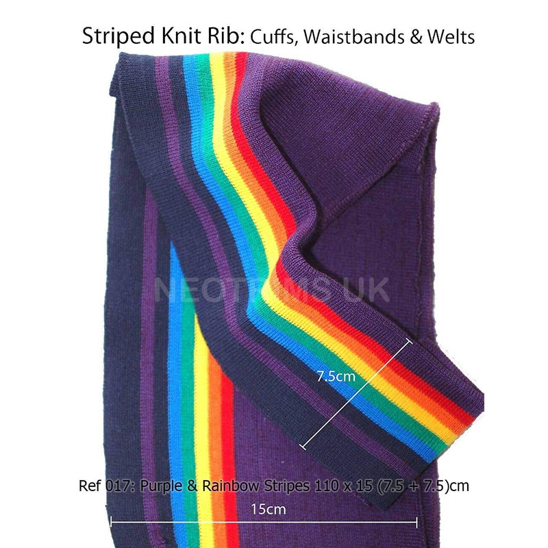Knit Rib Neck Band,Cuff,Waistband Edge Trimming. Rainbow Multi Colours & Machining Knitted Tape Strapping. Neotrims British Manufactured. 15cms Waistband,5cms Hem Trim & 3cms Wide Tape. Double Rib