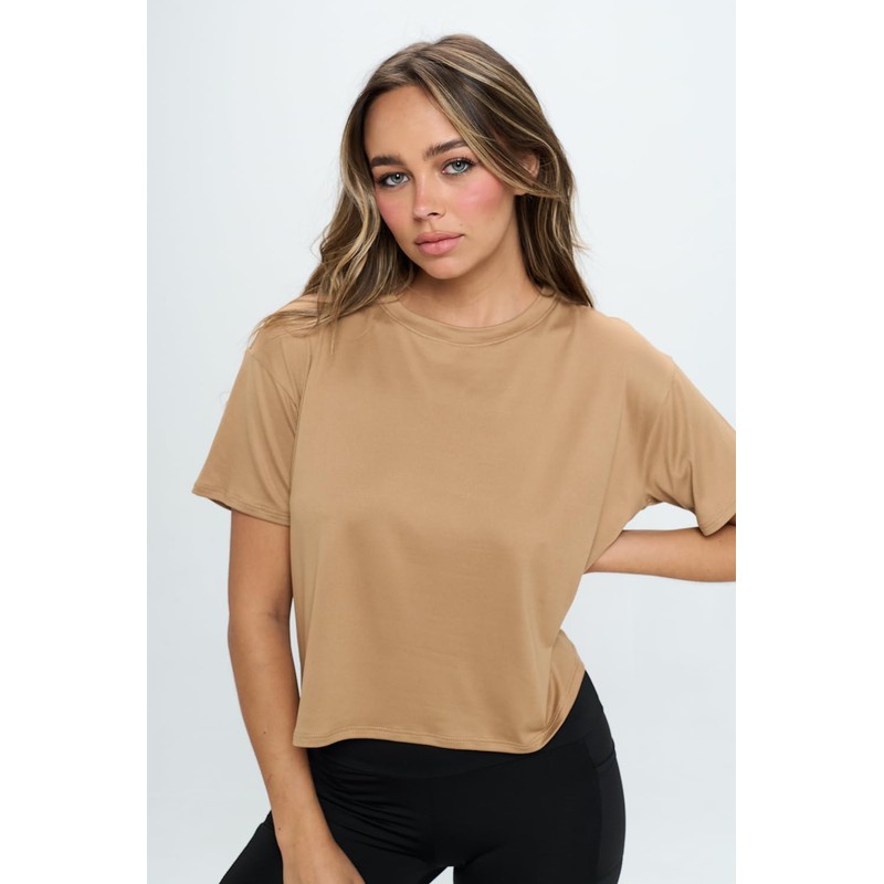 KNIT RIOT Women’s Crop Top – Short Sleeve Soft Boxy Crewneck Casual Active Workout Yoga Running Cropped Tee T Shirts KR271 Camel S