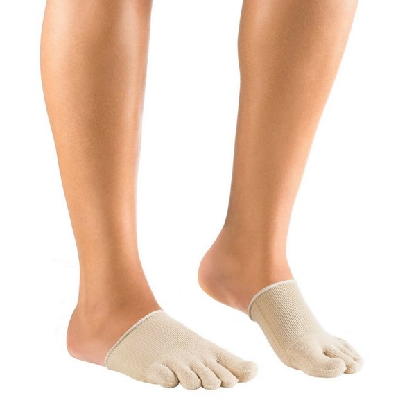 - Individual edging of the toes frees the foot from lateral tensions of normal socks.