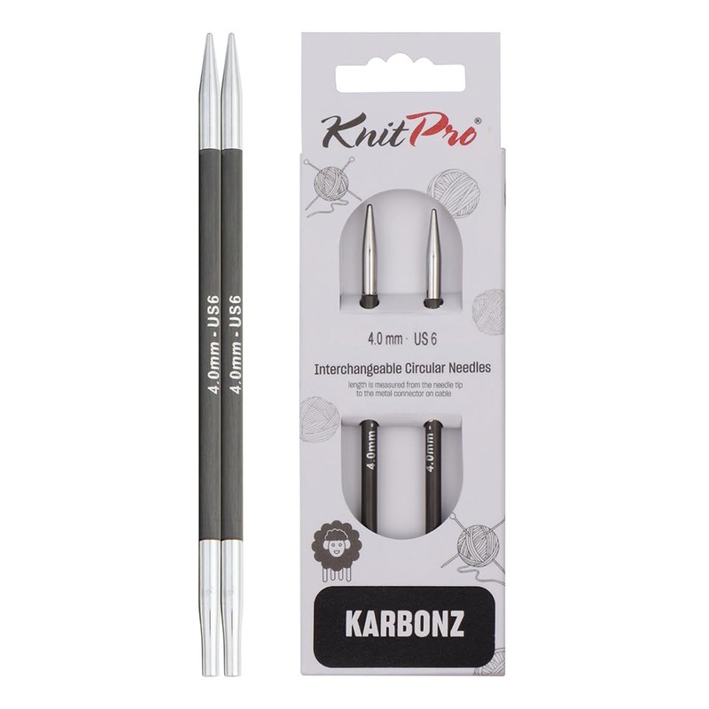 KnitPro 4 mm Karbonz Interchangeable Normal Circular Needles, Black and Silver
