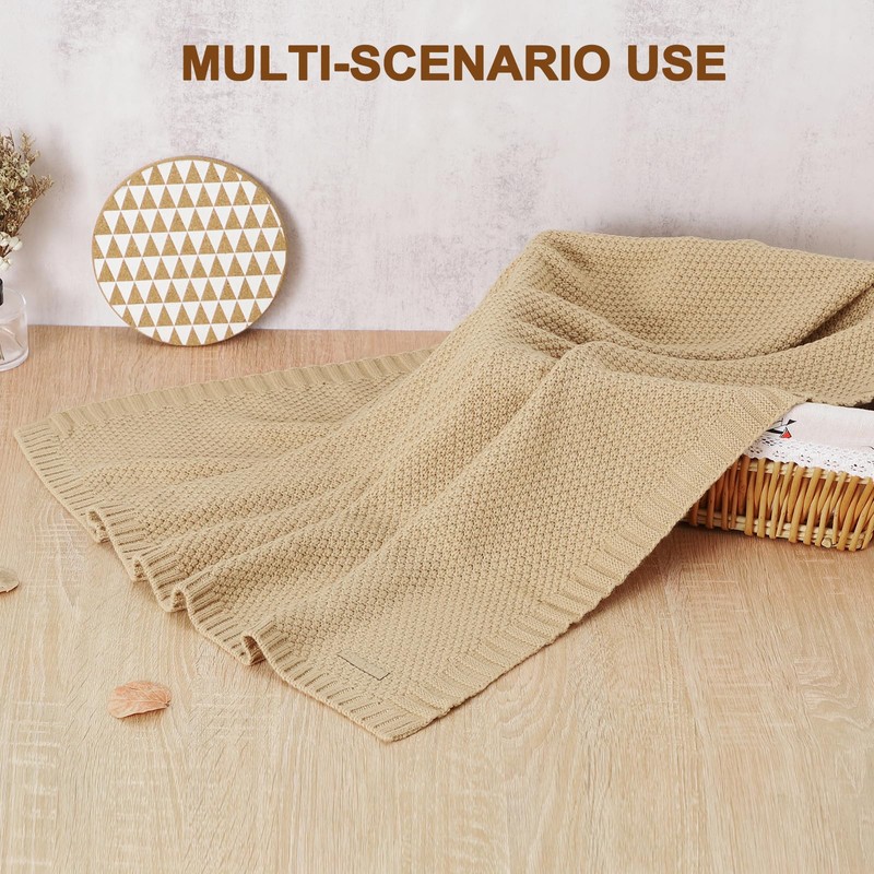 Knitted Baby Blanket, Cuddly Blanket, Odot Pram Outdoor, Children's Blanket, Crawling Blanket, Perfect for Girls and Boys, Babies (80 x 100 cm, Brown)