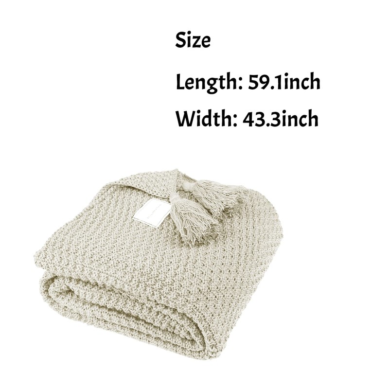 - 2.Chic Handmade Tassels:The cotton knit throw blanket has a unique knit pattern and Handmade Tassel and lovely poms poms.Simple and Classic,which not only brings coziness, but also adds a decorative element to your couch, sofa, master bed, guest bedroom, sitting room, family room, napping nook, reading corner.Color Available:Grey,Green,Beige