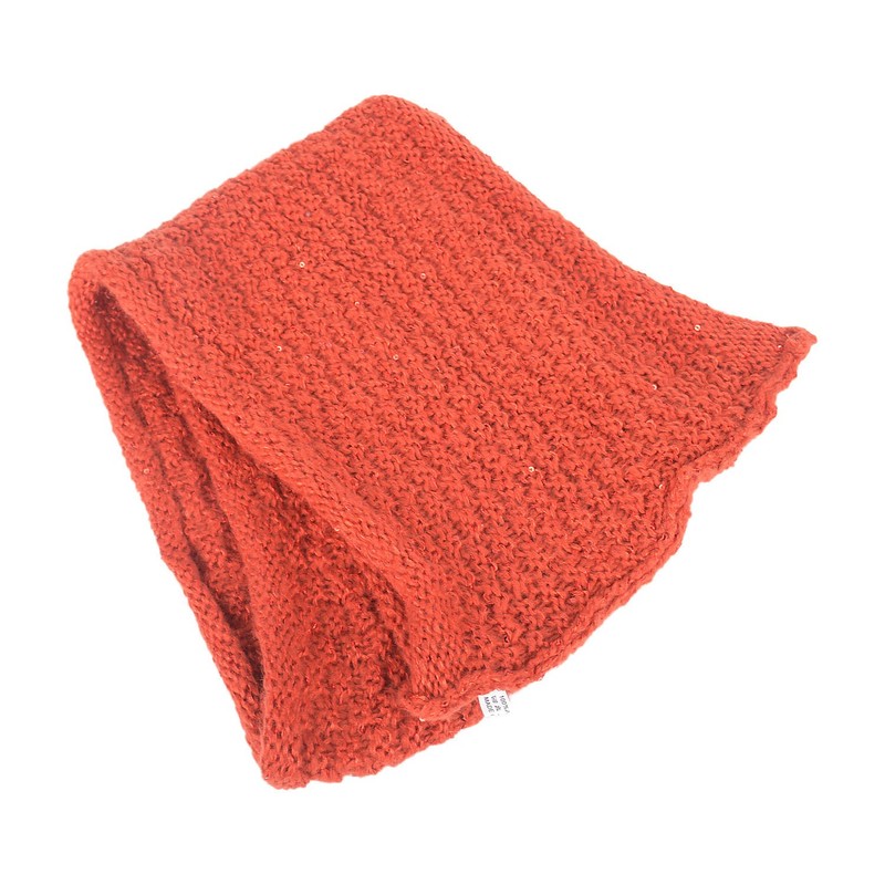 Knitted Solid Color Thick Winter Infinity Loop Scarf with Sequins (Rust)