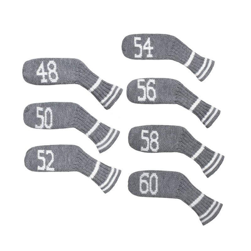 Knitted Wedge Golf Iron Headcovers 7 PCS Club Protector 48,50,52,54,56,58,60 Degree (Grey)