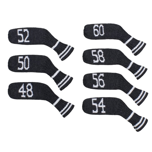 Knitted Wedge Golf Iron Headcovers 7 PCS Club Protector 48,50,52,54,56,58,60 Degree (Grey White)