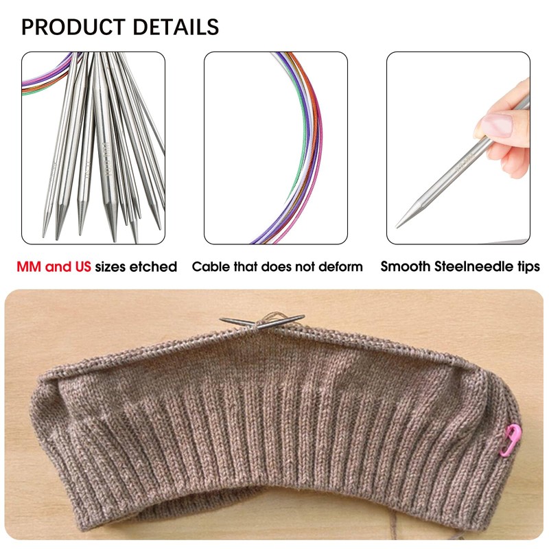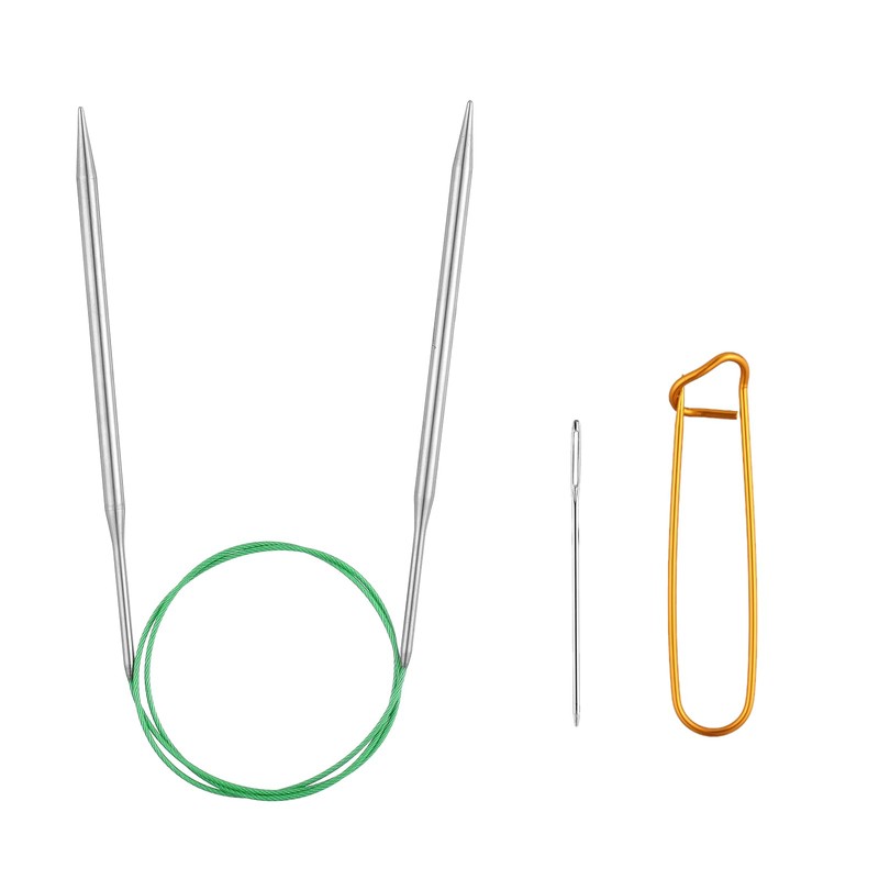 - Circular knitting needles made of stainless steel with semi-pointy tips. Their thin, flexible tube structure is ideal for knitting in the round, preventing overly tight stitches and not interfering with your hands. Suitable for a wide range of knit sizes.