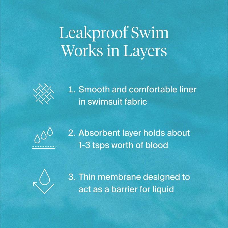 • Light Absorbency: absorbs about the same as 1-3 tsp, 1-3 pantyliners, 1-3 regular tampons, or 0.5 menstrual cups; ideal leakproof swimwear for light flow period days, as well as protection against sweat and discharge.