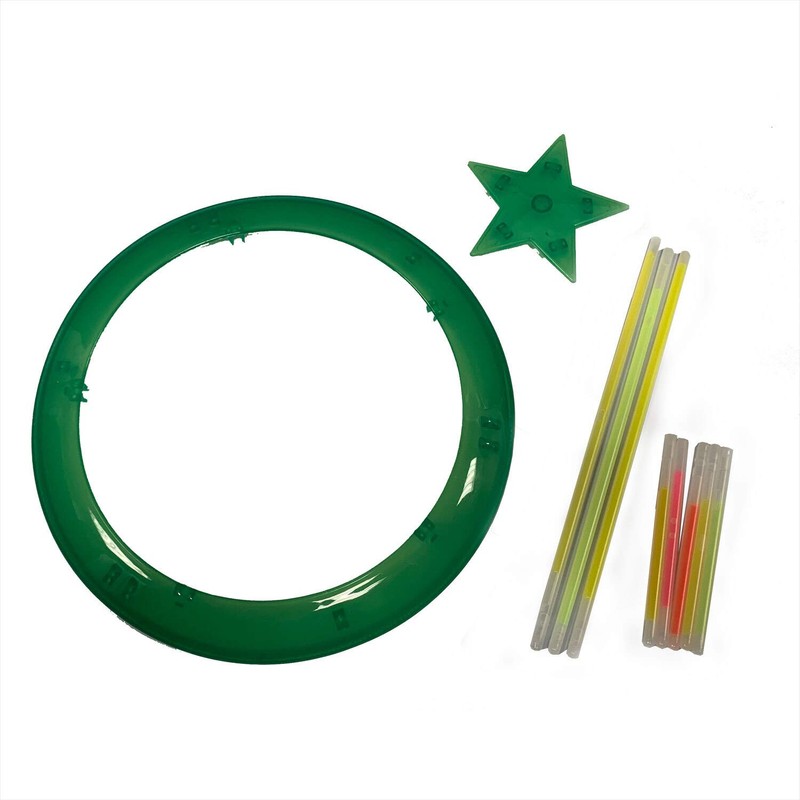 - A 10-piece set consisting of outer ring, star and eight glow sticks