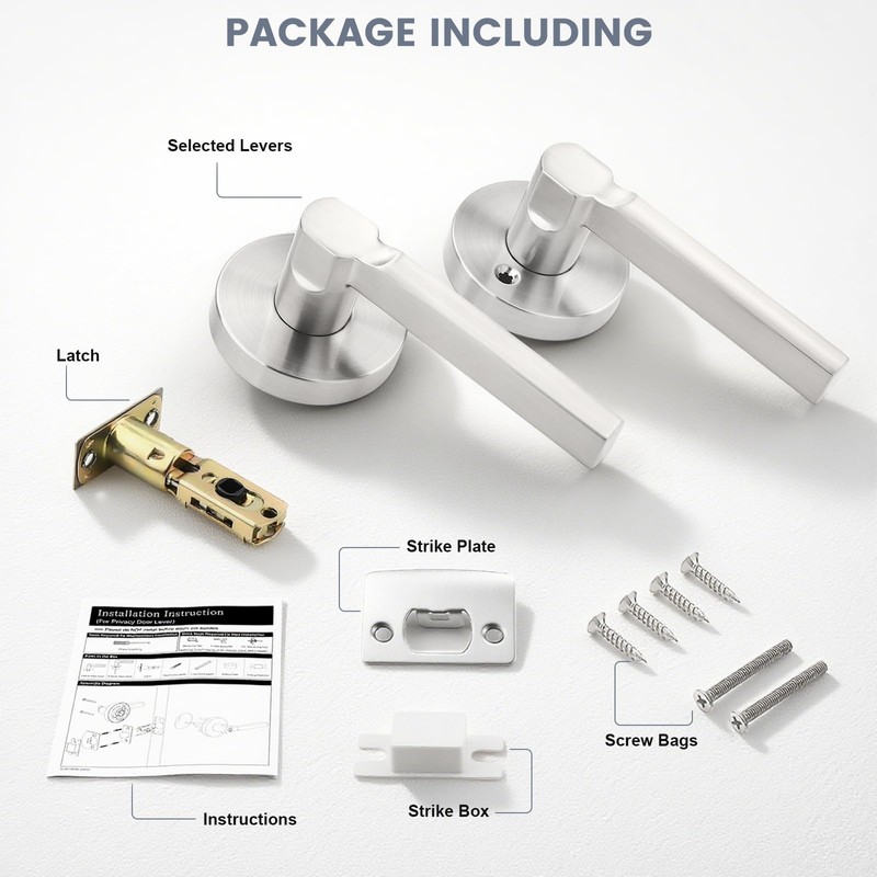 - Attractive and durable: This satin nickel interior door handle is made of aluminum alloy and stainless steel materials, with superior wear resistance and rust prevention function.Besides, the simple and modern design of this door lock also makes it a good choice for decorating homes.