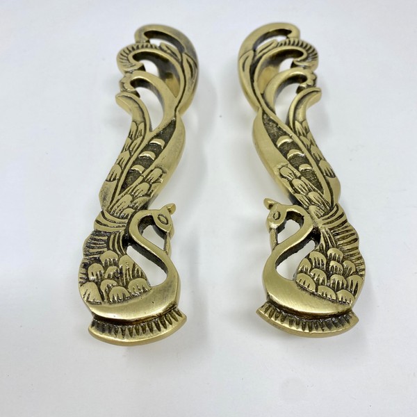 - Solid Brass Antique Pair Peacock Long Handles