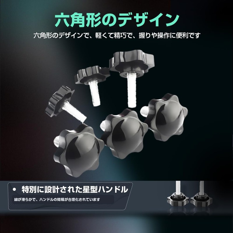 - 【Carefully Selected Material】The knobs of this set are made of high quality plastic, comfortable to touch and long lasting, with a burr-free design to enhance your experience The male threads are refined with high carbon steel material, not only hardness, but also the surface is galvanized to effectively increase rust and corrosion resistance, ensuring the stability of long-term use