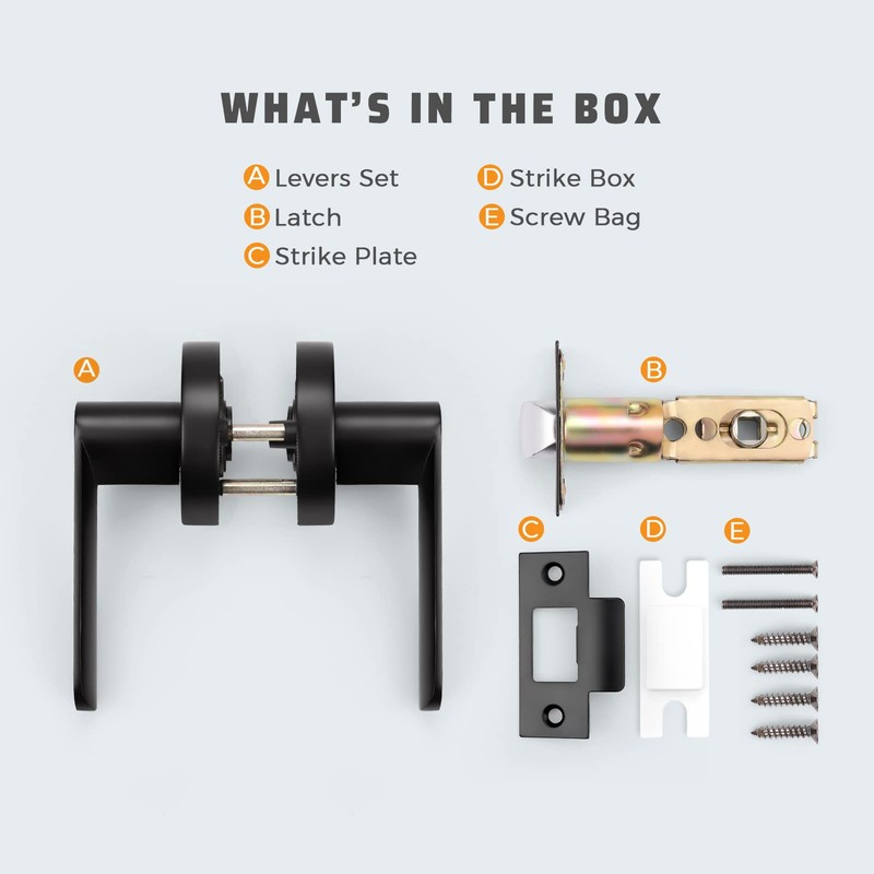 - PASSAGE FUNCTION: No lock for the leverset. Use it for any door for spaces that need to stay accessible, but where you sometimes need peace and quiet - closets, hallways, consulting or conference rooms; Material: Zinc Alloy; Finished Color: Matte Black.