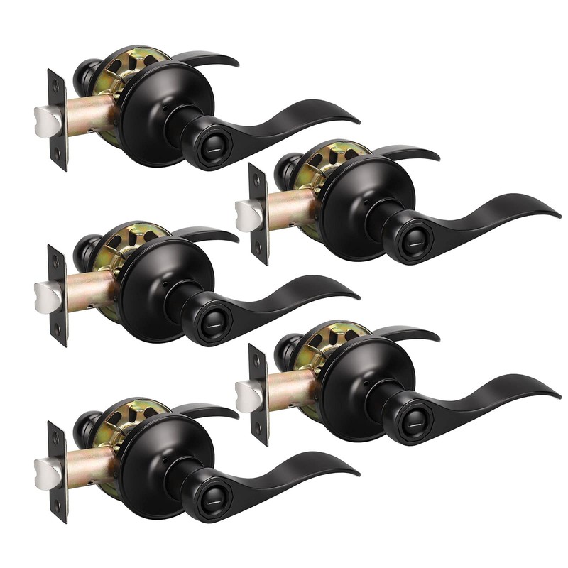 KNOBWELL 5 Pack Black Door Knobs Privacy Door Handles, Interior Door Knobs Matte Black for Bathroom/Bedroom, Keyless Drop Style Door Lever with Lock
