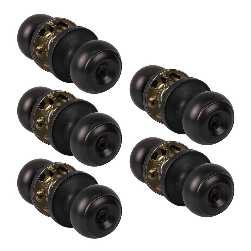 - KEYED ENTRY(Keyed Alike): The door knob can be locked inside and opened outside with keys. Use it for your entrance doors, front doors, bedrooms, bathrooms, interior locking doors and other privacy needs; Material: Metal; Finished Color: Oil Rubbed Bronze.