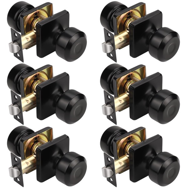 KNOBWELL Black Door Knobs, Square Interior Door Knobs, Closet Door Knob for Passage, Hallway, Keyless Stainless Steel Indoor Door Knob, 6 Pack