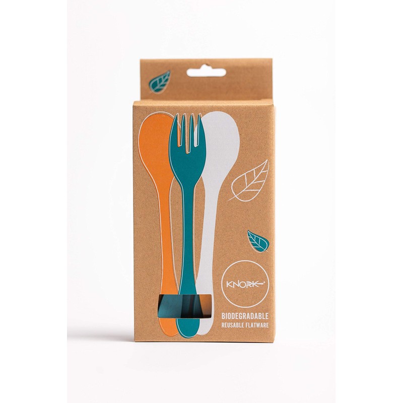 • Knork ergonomic design and beveled tines easily cut through food with one hand. Make the switch from single-use plastics that are clogging up landfills and our oceans.