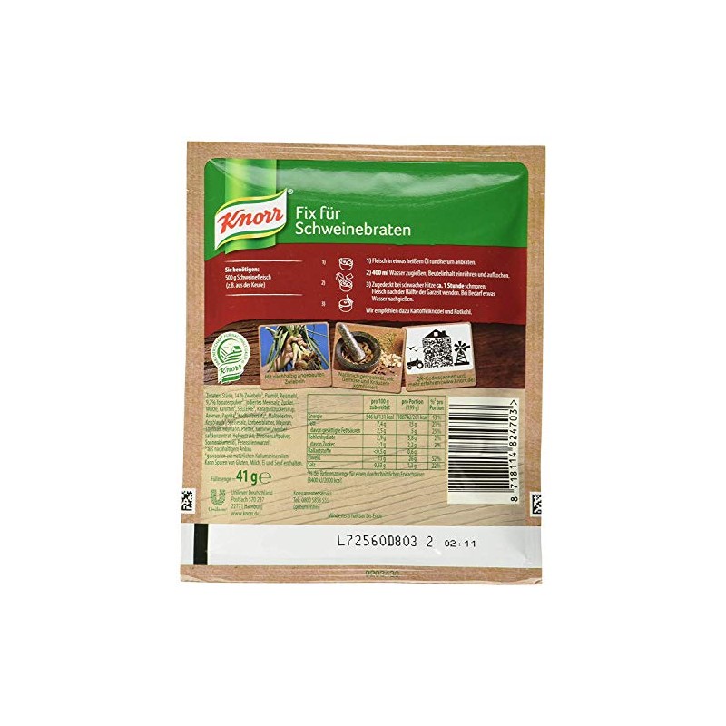 - Here you receive 4 packs of Knorr Fix Schweinebraten.