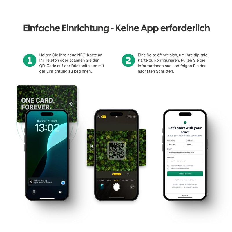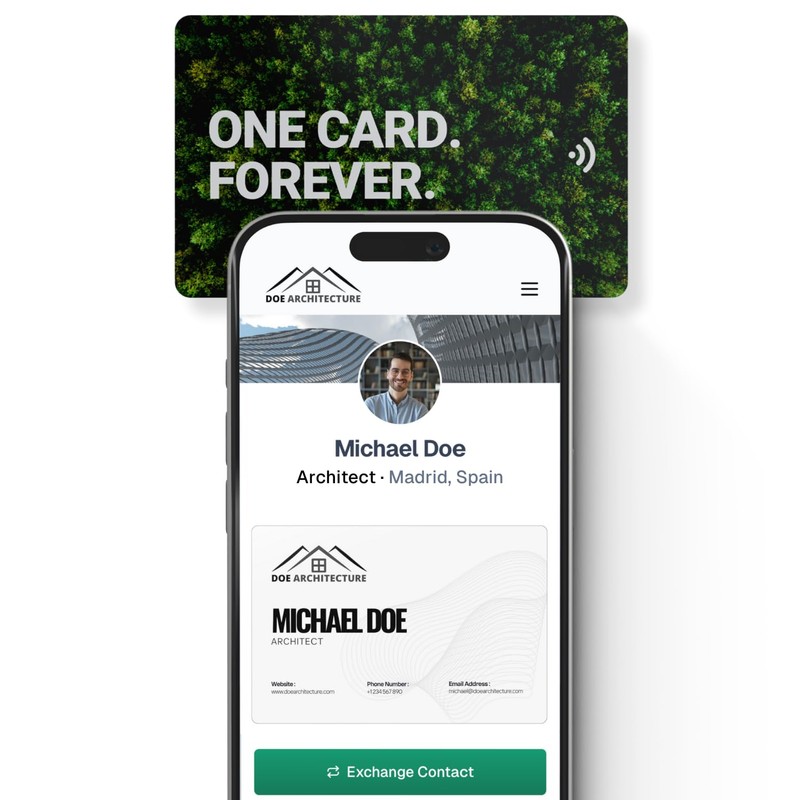KNOW.EE Digital Business Card NFC Smart Networking Card + QR Code Tap to Share Compatible with iOS & Android (Forest)