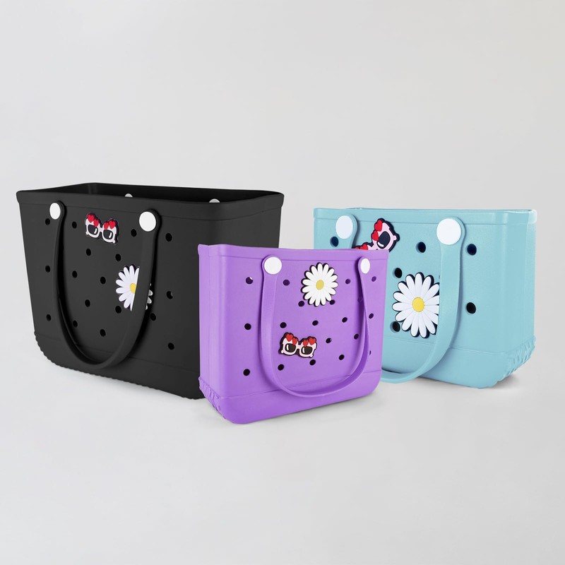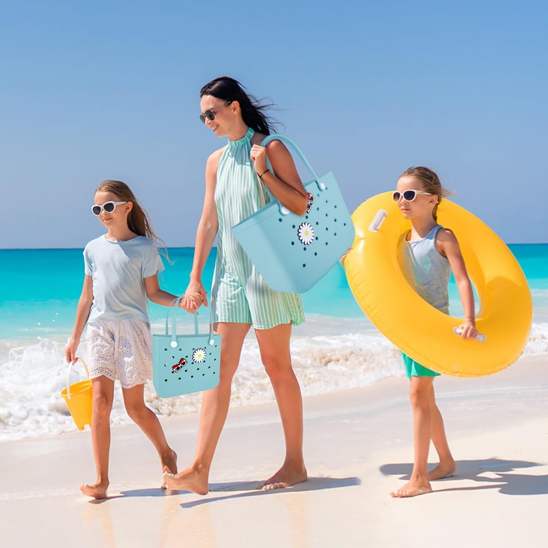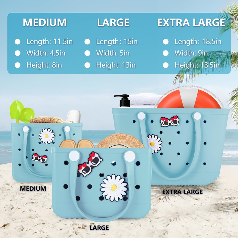 - Perfect design: You can choose the size of rubber beach bag according to your preference, rubber totes for beach has three sizes to choose from, X-Large:18.5x9x13.5in Large :15x5ix13i Medium:11.5x4.5x8in,plastic tote bag can hold snacks, sunscreen, books, cosmetics and more!
