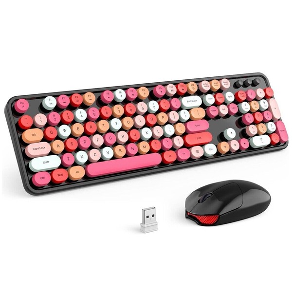 KNOWSQT Wireless Keyboard and Mouse Combo, Black Colorful Retro 2.4GHz